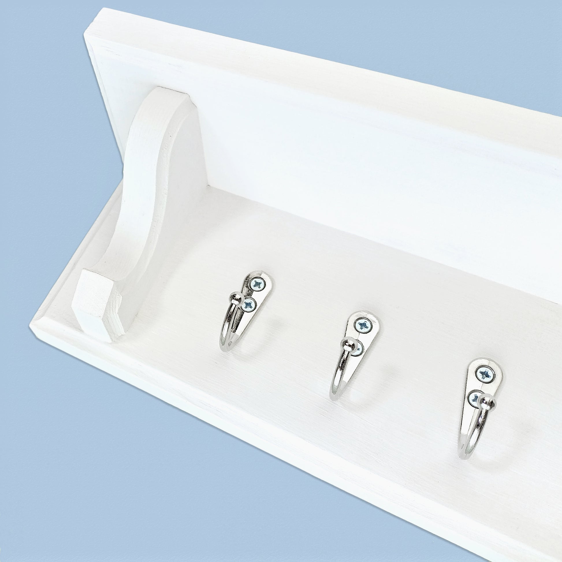 The top shelf offers handy space for essentials like a phone, wallet, or small décor pieces, making this handcrafted key rack a stylish and practical addition to any home.